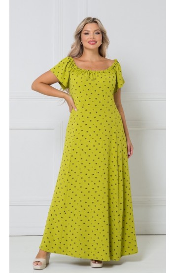 Повседневное платья в стиле «Кантри» длиной макси, выполнено из тонкой плательной ткани с эффектом крэш. Платье отрезное по линии талии. Верх переда платья целый. Спинка с отрезными бочками. В швах притачивания бочков воздушные петли со шнуровкой, позволяющей регулировать свободу прилегания по фигуре. Рукав-реглан короткий. Длина рукава от горловины в 48 р-ре – 19 см. в 62 р-ре – 22 см., ширина рукава по низу в 48 р-ре – 51 см. в 62 р-ре – 60 см. Горловина со сборкой на резину, что позволяет носить платье с открытыми плечами. Юбка 4-х клинка слегка расклешенная к низу. Платье без застежек и подклада. Длина изделия по спинке в 48 р-ре – 128 см. в 62 р-ре – 134 см.