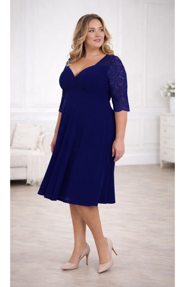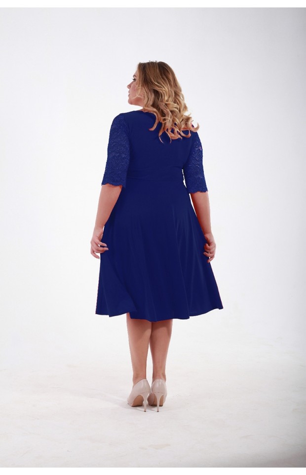 Эффектное коктейльное платье прилегающего силуэта, расклешенное к низу. Кокетка и рукава 3/4 выполнены из кружева. Элегантность этой модели придает утонченное сочетание отделки кружевом и безупречность кроя. Данная модель прекрасный выбор для любого торжества, в нем Вы будите неотразимы.