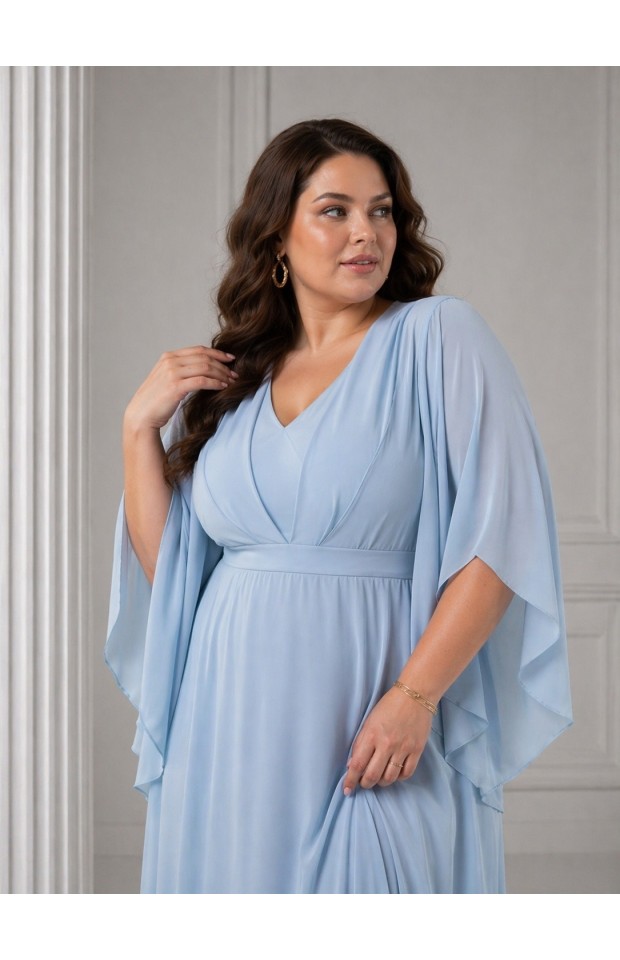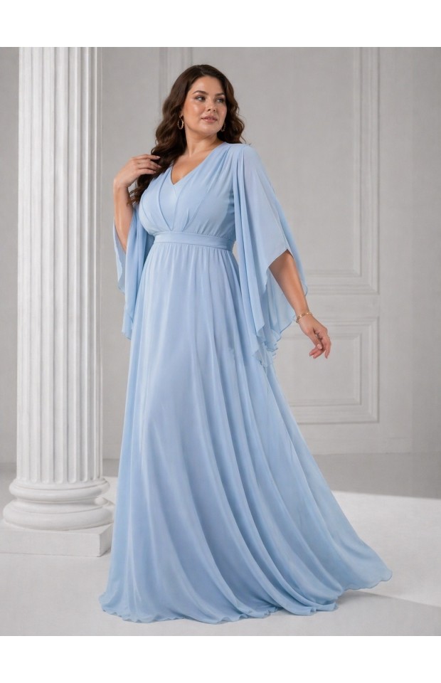 Элегантное платье на запах из ткани креп-шифон с ассиметричными рукавами. Лиф с V-образным вырезом по горловине и заложенными встречными складками в сочетании с длинной юбкой А-силуэта зрительно вытягивают силуэт платья. Идеальный вариант торжественных мероприятий и вечерних раутов. Хотим обратить ваше внимание, что реальный цвет платья может отличаться от представленного на изображении и зависеть от цветопередачи экрана вашего устройства.