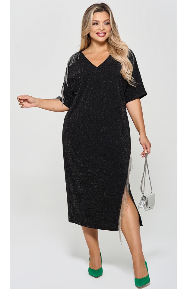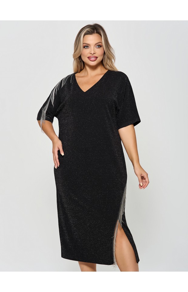- фигурный разрез слева, декорированный металлизированной бахромой
