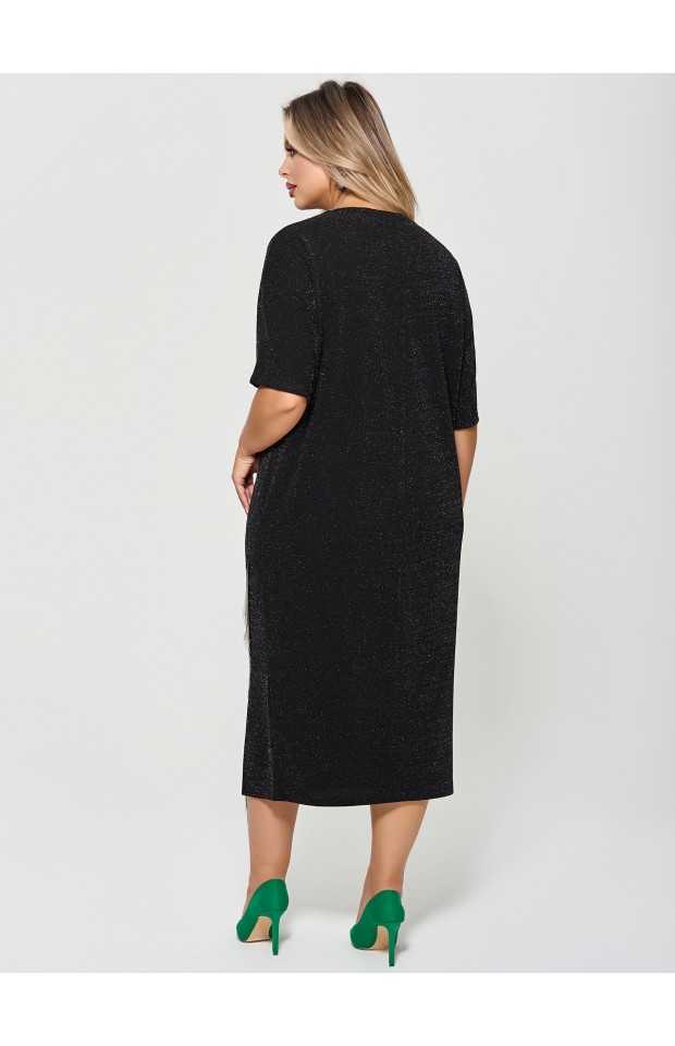 Праздничное женское платье приталенного силуэта из трикотажа с люрексом: