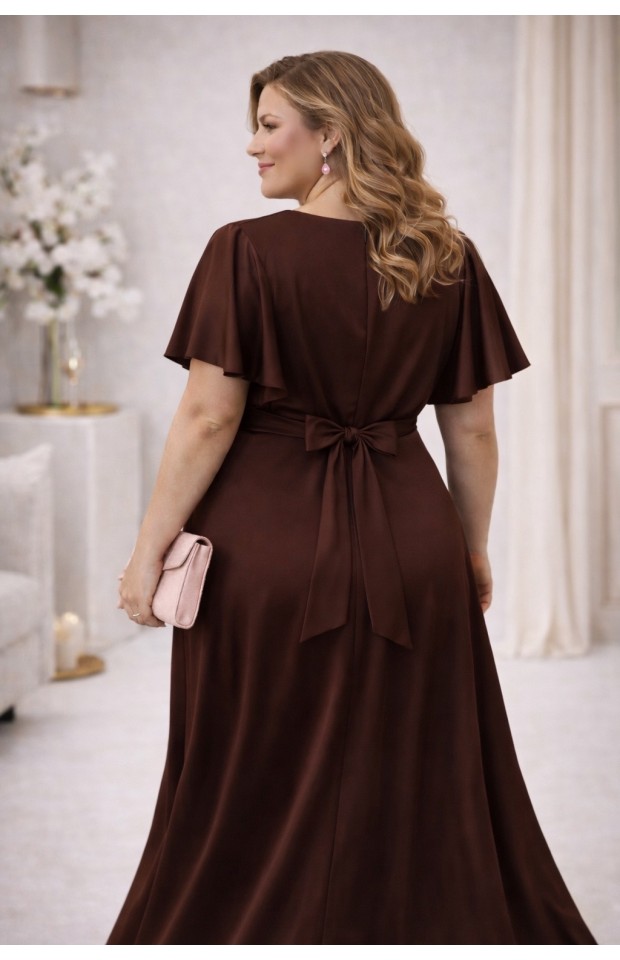 Длинное вечернее платье из матового шелка. Лиф с легкими спадающими рукавами в сочетании с длинной юбкой на запах идеально подчеркивает вечерний образ. Оригинальность модели придает вертикальный волан по разрезу. Вся суть этого платья - подчеркнуть достоинства и скрыть недостатки.