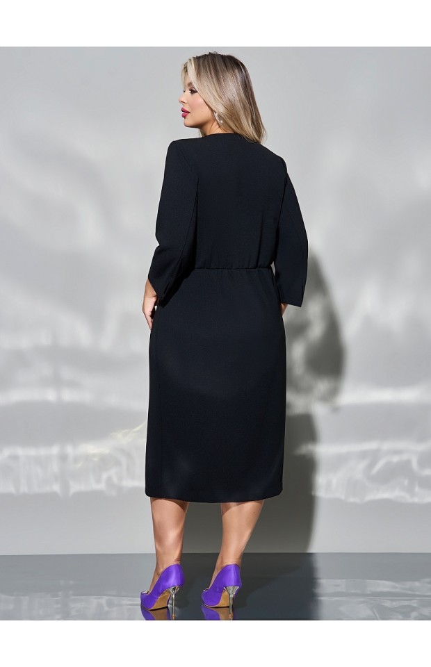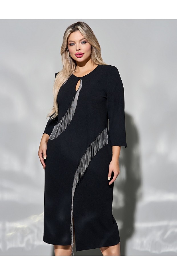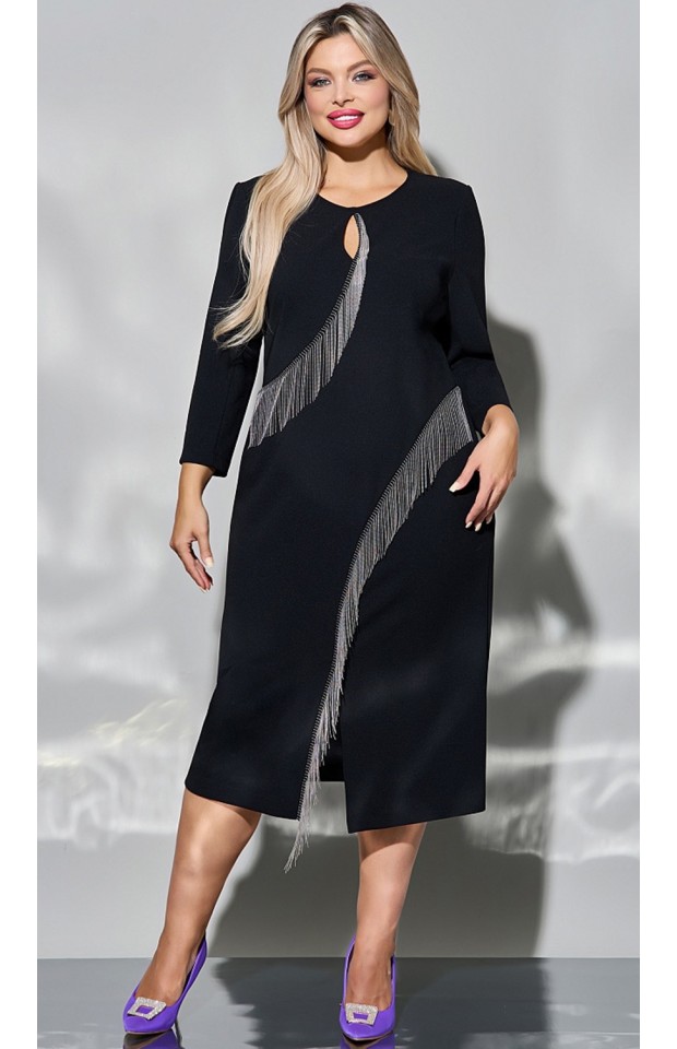 Праздничное женское платье приталенного силуэта из трикотажа с металлизированной бахромой: