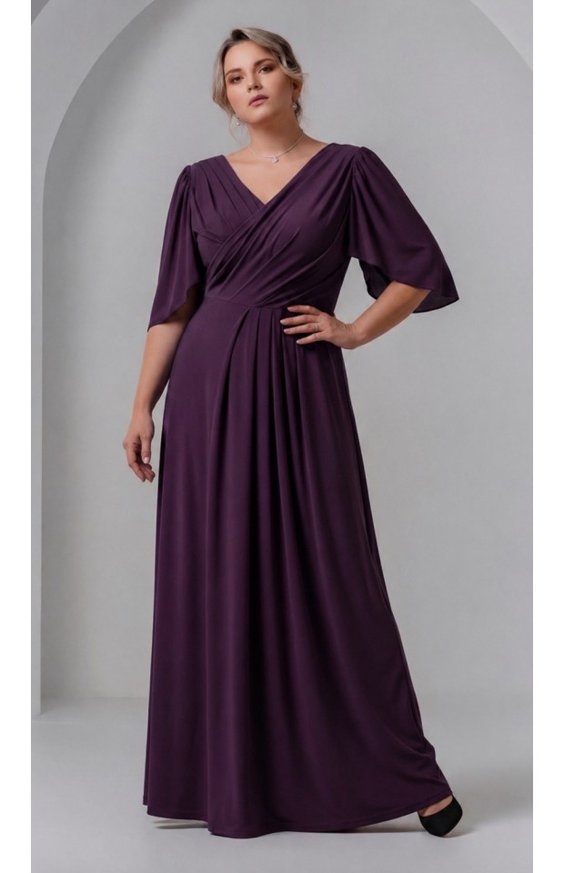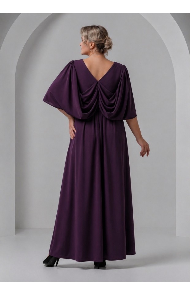 Вечерние платье из стрейчевой трикотажной основы, сложного свободного кроя. Диагонально расположенные складочки запаха подчеркнут линию декольте, драпировки на спине скроют несовершенства фигуры, а длина в пол визуально сделает выше и стройнее. Хотим обратить ваше внимание, что реальный цвет платья может отличаться от представленного на изображении и зависеть от цветопередачи экрана вашего устройства.