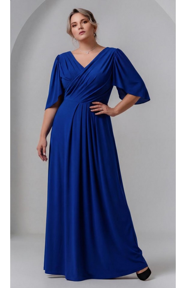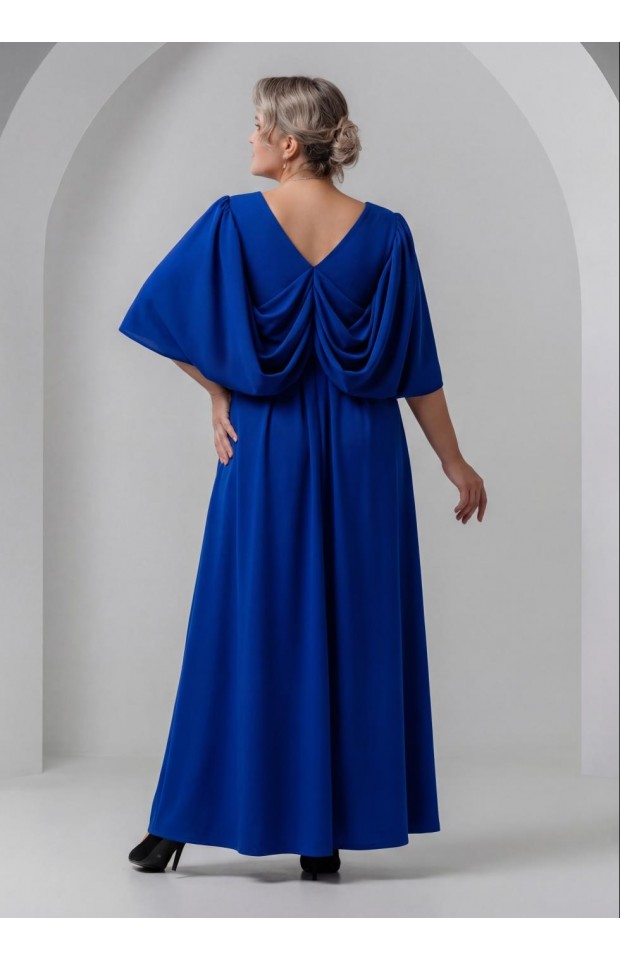 Вечерние платье из стрейчевой трикотажной основы, сложного свободного кроя. Диагонально расположенные складочки запаха подчеркнут линию декольте, драпировки на спине скроют несовершенства фигуры, а длина в пол визуально сделает выше и стройнее. Хотим обратить ваше внимание, что реальный цвет платья может отличаться от представленного на изображении и зависеть от цветопередачи экрана вашего устройства.