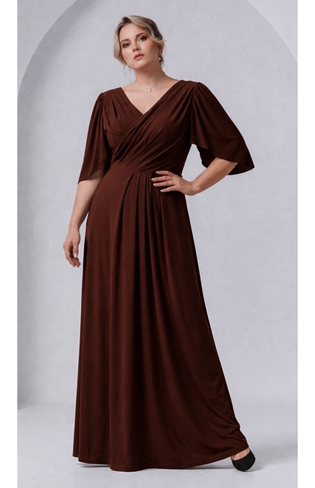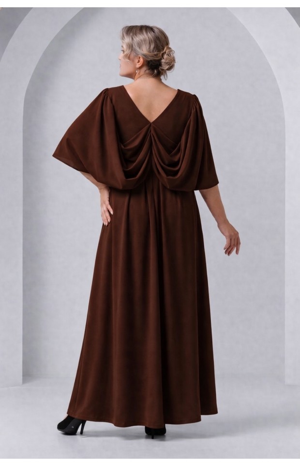 Вечерние платье из стрейчевой трикотажной основы, сложного свободного кроя. Диагонально расположенные складочки запаха подчеркнут линию декольте, драпировки на спине скроют несовершенства фигуры, а длина в пол визуально сделает выше и стройнее. Хотим обратить ваше внимание, что реальный цвет платья может отличаться от представленного на изображении и зависеть от цветопередачи экрана вашего устройства.