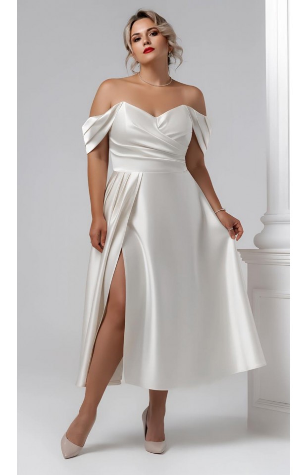 Необычайно женственное платье-бюстье с острой линией кроя по лифу из магнуса. Юбка длины миди на запах свободного кроя дополняет образ, а шнуровка по спинке делает максимально идеальную посадку. Открытые плечи и рукава спадающие с плеч выглядят элегантно и изыскано.