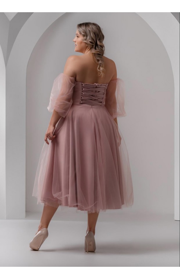 Необычайно женственное платье бюстье из свадебного атласа полностью дублировано евро - фатином. Юбка длины миди, в сочетании с рукавами - фонариками идеально дополняют образ, а шнуровка по спинке делает максимально идеальную посадку. Шикарный образ, изысканный и безупречный.