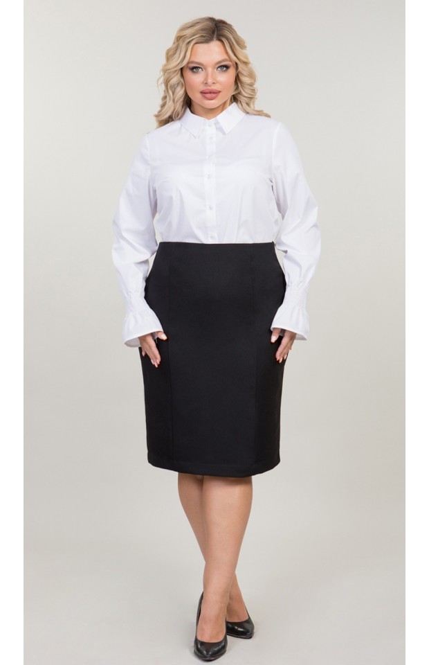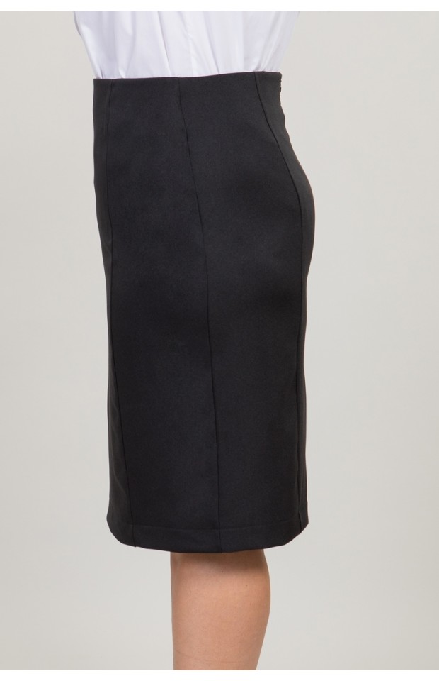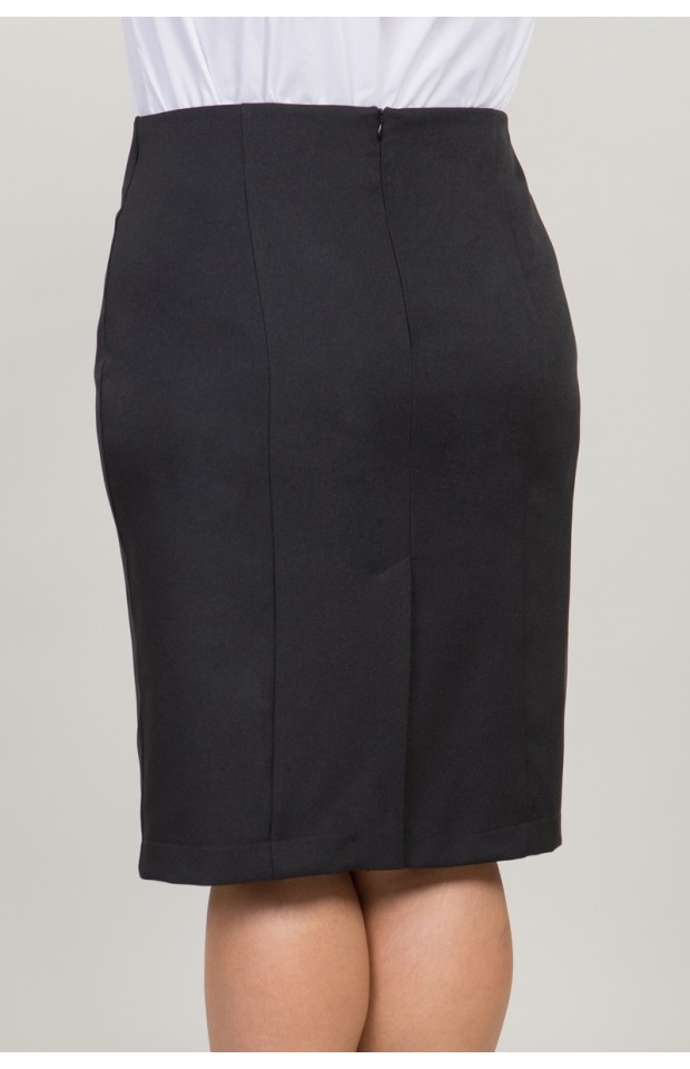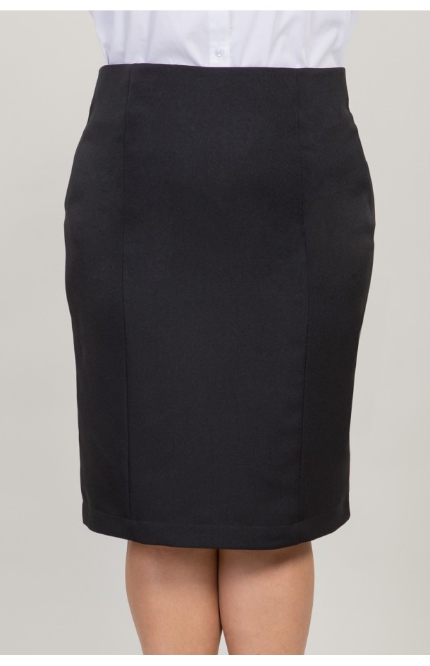 Удобная повседневная юбка-карандаш, выполнена из эластичной костюмной ткани. Перед и спинка юбки с рельефными швами. В среднем шве спинки потайной замок-молния длиной 20 см. и шлица длиной 25 см. Верхний срез юбки обработан обтачками. Юбка на подкладе. Длина изделия по спинке в 48 р-ре –62 см. в 64 р-ре – 65 см.