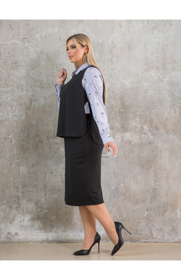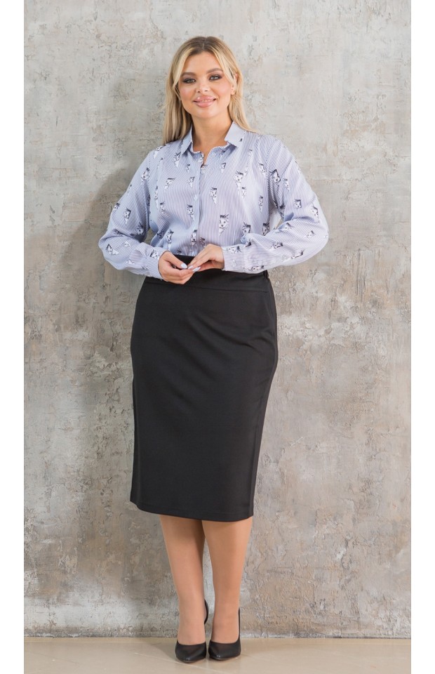 Практичная повседневная юбка прямого силуэта, выполнена из эластичного трикотажного полотна. Юбка по спинке с поясом, пояс собран на резину, по переду двойная притачная кокетка. Юбка без застежек и подклада. Длина изделия по спинке вместе с поясом в 48 р-ре – 70 см. в 64 р-ре – 72 см.