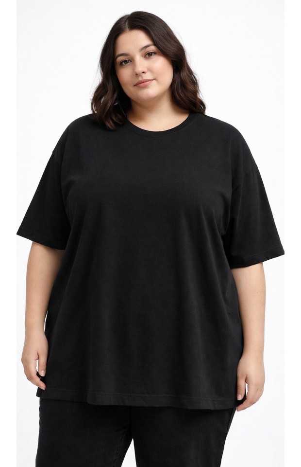 Базовая футболка больших размеров — удобная и универсальная модель на каждый день. Свободный крой не сковывает движения, мягкая ткань приятна к телу и хорошо держит форму. Женская футболка большого размера легко сочетается с джинсами, брюками и юбками, подходит для повседневной носки, работы и отдыха. Отличный вариант базовой одежды для комфортных образов на каждый день.