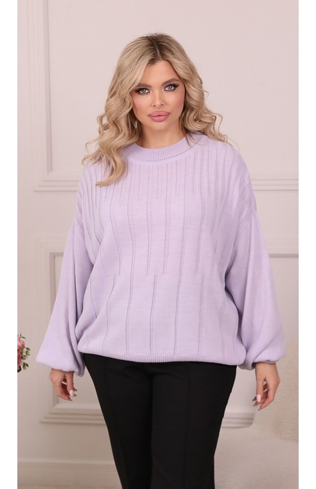 Стильный джемпер свободного силуэта, выполненный из акрила и шерсти. Длина изделия по спинке от плечевого шва до низа изделия - 66 см.