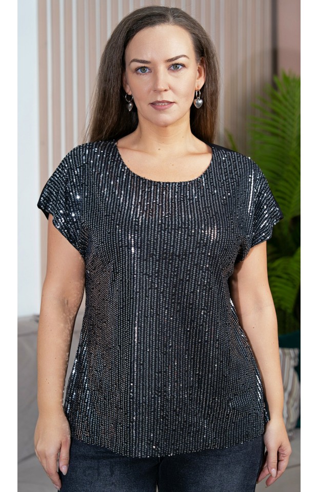 Создайте ослепительный образ с нарядным топом «Дарина». Эта модель — идеальное решение для корпоратива, вечеринки или похода в театр. Россыпь пайеток, выложенных строгими вертикальными линиями, не только дарит праздничное настроение, но и визуально вытягивает силуэт, делая фигуру стройнее и выше. Лаконичный круглый вырез и мягкая линия плеча добавляют образу женственности, а свободный крой позволяет чувствовать себя раскованно и комфортно весь вечер. Сочетайте с простыми брюками или юбкой-карандаш — пусть топ будет главным акцентом вашего наряда!
